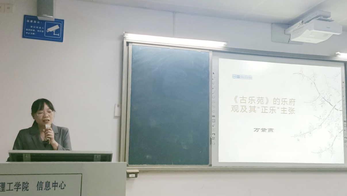 本次讲座主要从编撰体例中的正乐思想、文献补正中的正乐思想和《古乐苑》其书三个方面展开讨论。万紫燕首先向大家介绍了《古乐苑》的作者——梅鼎祚以及《古乐苑》从乐府诗集到古乐府再到古乐苑的成书过程,接着详细讲解了《古乐苑》新增前卷“古歌辞”、新增“仙歌”“鬼歌”以及增补“杂歌谣辞”的相关知识,并具体阐述了“补其阙佚之补充题解”、“补其阙佚之增补“序言””以及“正其伪舛”这几个方面的内容,为大家答疑解惑。