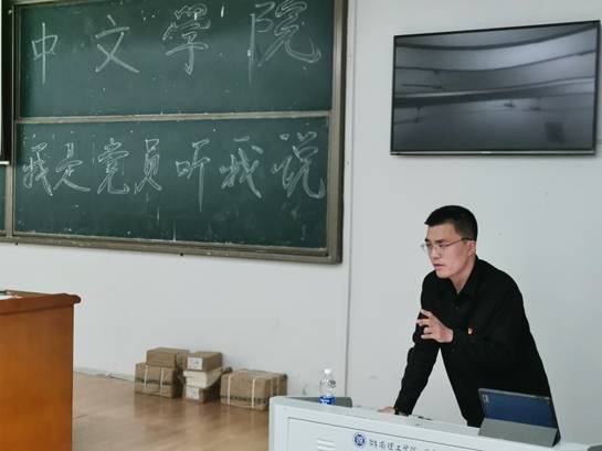 10月14日晚,中文学院在9T2举办“我是党员听我说”新生信仰启航主题教育活动。活动由中文学院党委兼职组织员、学生第二党支部书记刘子行老师主持,2020级辅导员蔡春洪老师、助班、全体学生参加活动。