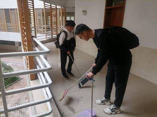 同学们以对劳动的热情和对学校的热爱,认真参加义务劳动。十五栋教学楼里到处是他们来来往往忙碌的脚步,阳光大草坪上是他们低头弯腰除草的剪影,包括食堂周围都是一片整洁。