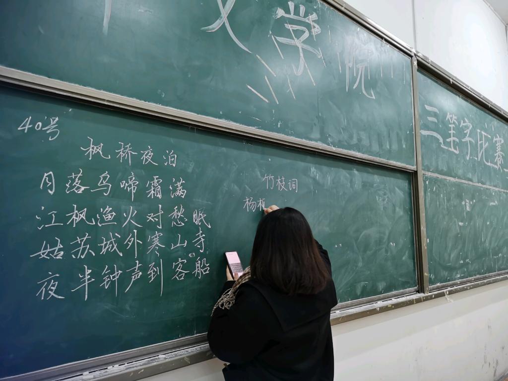 为进一步提高学生的书写水平,12月25日上午,中文学院2021年学生三笔字比赛在9T2举行。