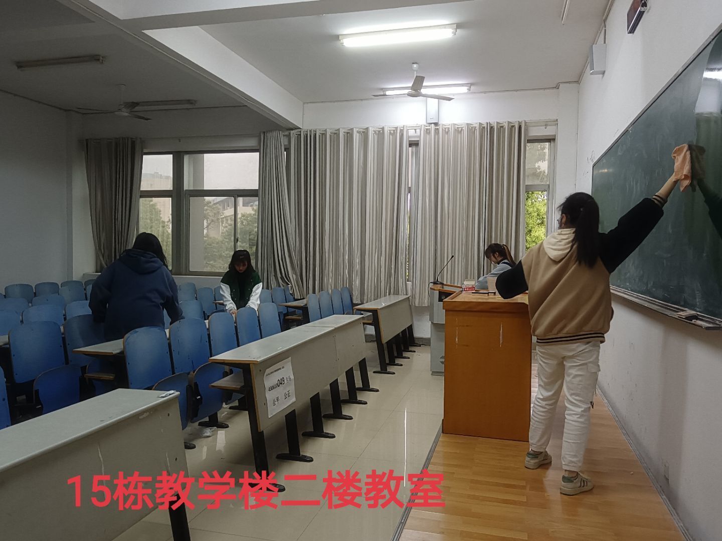 中文学院2021级本科生在刘子行老师的带领下,多次在寝室、南院9号、15号教学楼和一食堂周边区域开展劳动实践活动。