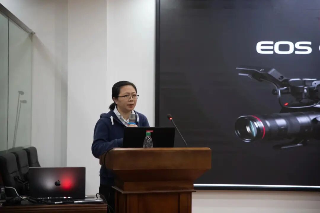 佳能华中市场部经理张婕率先带来影像产品的深度解读。从核心技术优势到全品类产品布局,她详细介绍了多款适配视频创作的专业设备性能与应用场景,展现了专业影像设备的硬核实力,为学员后续创作提供硬件参考。