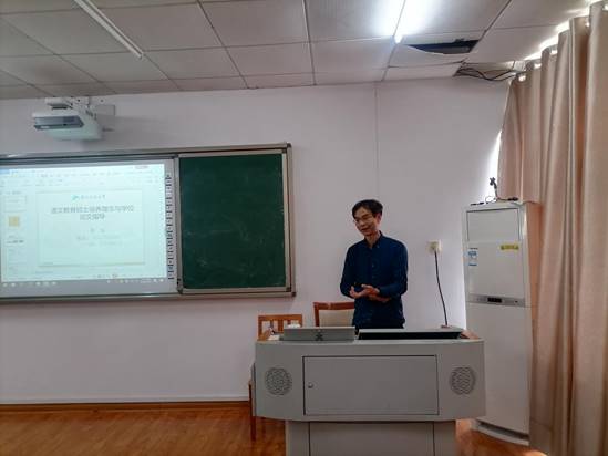 10月23日下午,中文学院在9314举办“南湖讲坛”教育硕士导师培训讲座之“语文教育硕士培养理念与学位论文指导讲座”,讲座由湖南科技大学李学教授主讲。院长曾炜,副院长张勇、封传兵出席,部分专任教师和研究生参加。