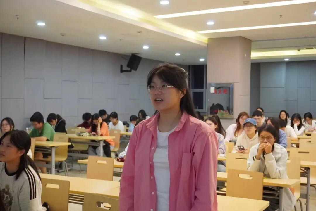 在提问环节,面对同学们的疑问,米嘉瑗给出针对性建议:练习普通话可借助APP工具,重点关注语音准确性,熟练掌握重难点声母、韵母(如鼻边音、前后鼻音)的正确发音;同时鼓励大家根据自身需求选择适配的练习方式,切实提高普通话水平。