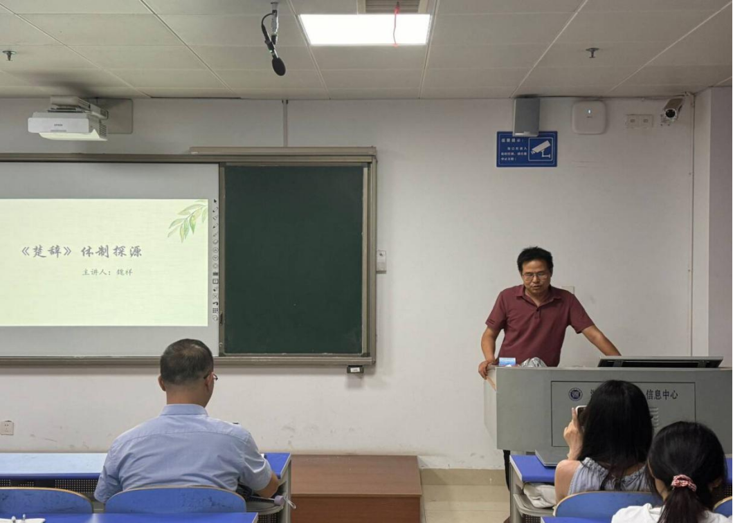 魏祥博士用深入浅出的讲解方式,带领大家走进了《楚辞》的世界。本次讲座,他重点阐述了《楚辞》在我国文学史上的独特地位,强调其作为继《诗经》之后又一诗歌巅峰,不但具有浓郁的地域文化特色,更以其独特的体制和艺术风格,对后世文学发展产生了深远影响。此外,魏祥博士还讲述了《楚辞》成书过程对其体制的影响,表明不同时期的创作者和编纂者,都为《楚辞》体制的丰富和完善贡献了自己的力量,《楚辞》的体制也在这一漫长的成书过程中逐渐定型 。