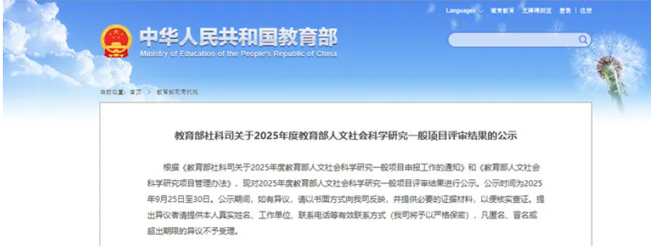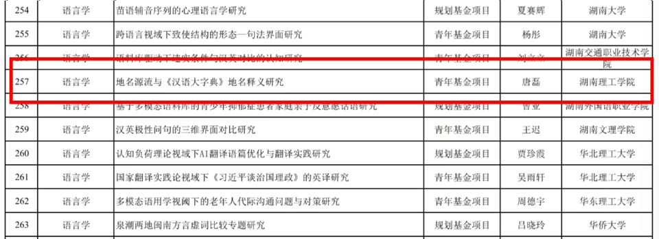 近日,教育部社科司公布了2025年度教育部人文社科研究项目立项名单。我院语言学科唐磊博士申报的《地名源流与〈汉语大字典〉地名释义》通过专家评审,获批青年基金项目。
