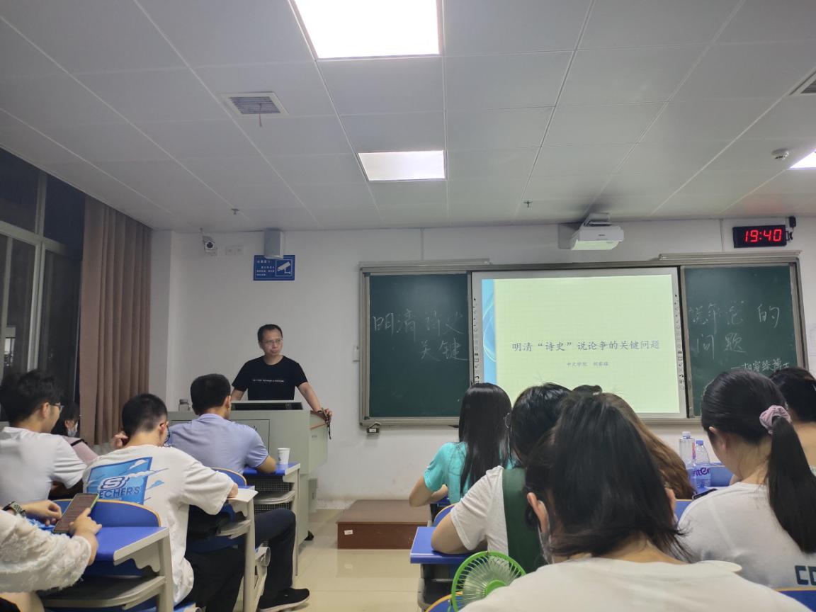 5月31日晚,南湖讲坛第33期在12201继续开讲。由胡睿臻博士作“明清‘史诗’说争论的关键问题”为主题的学术讲座,我院汉语21-3BS班、秘书21-1BF班全体同学参加。