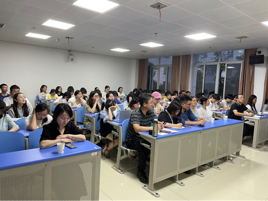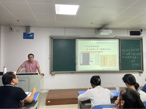 6月15日晚,中国语言文学学院南湖讲坛第33期在12201继续开讲。由封传兵教授作“明末南京官话音韵的双璧∶《音义便考》和《西儒耳目资》”主题学术讲座,语言学教研室肖峰、米嘉瑗、段勇义、朱福妹、唐磊、蔡旺、孙芳莎等老师到场交流,汉语21-2BS班、汉语21-3BS班全体同学参加了此次讲座。