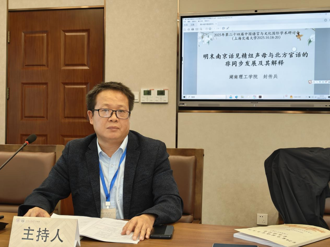 我院封传兵教授应邀参会,担任分会场学术主持,并作了题为《明末南京话见精组声母与北方官话的非同步发展及其解释》的学术报告。该报告系统梳理了明清以来南京话见组、精组声母的历史演变,在与北方官话做比较分析的基础上,指出近代南北官话在见、精组声母的演变方面存在“非同步性”,并从历史移民、人口变迁和语言接触等视角对这种“非同步性”作出解释。