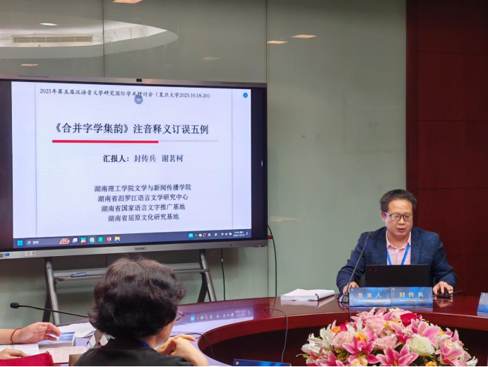 文新学院封传兵教授应邀参会,担任分会场学术主持,并作了题为《〈合并字学集韵〉注音释义订误五例》的学术报告。报告以《合并字学集韵》为研究对象,综合运用“形音义用”相匹配的研究方法,对书中注音释义方面的讹误问题进行举例分析。观点认为,明清字书韵书是中国古代语文辞书发展史上的重要一环。然而因为多种原因,书中难免出现一些失误之处,因此有必要对这些字书韵书进行校订整理。在校对和整理时,“形音义用”综合关照是最可靠也是最实用的方法。这些文献校对和整理工作是后续开展汉语史、语音史和文字训诂研究的基础。