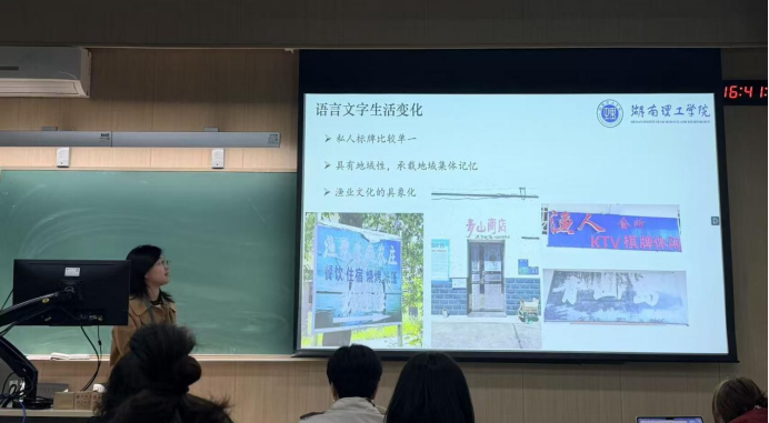 研究生杨紫燕作题为“洞庭湖青山岛渔岛语言生活调查”的学术报告。报告从语言文字生活、语言知识生活以及语言技术生活三个方面,分析得出“语言景观保留渔业记忆”“渔业词汇和渔业口传俗语面临传承危机”“数字技术普及却未有效传承渔业语言”等观点,证明青山岛渔岛语言生活正处于消逝状态,并提出加强青山岛国家通用语言文字推广、加强语言资源保护与服务等建议,以助力乡村振兴与和谐岛内语言生活建设。