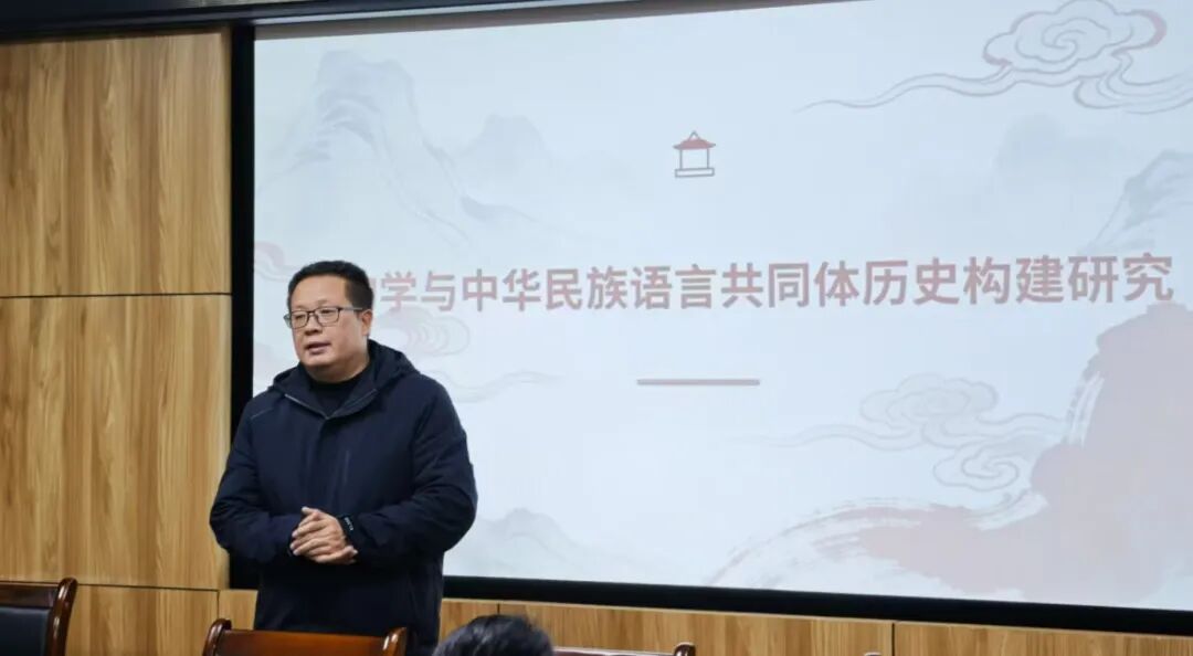 3月31日晚,文学与新闻传播学院在9401学术报告厅举办南湖讲坛新年第一期——“音韵学与中华民族语言共同体历史构建”主题讲座。本次讲座由文新学院副院长(主持工作)封传兵教授担任主讲嘉宾,语言学系、新闻传播系教师及部分研究生、本科生到会交流。