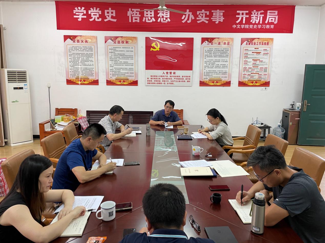 8月27日下午,中文学院党委召开扩大会议,开展学习贯彻习近平总书记“七一”重要讲话精神交流研讨。学院党委领导班子成员参加,院长曾炜、副院长肖峰列席。学院党委书记杨厚均主持。