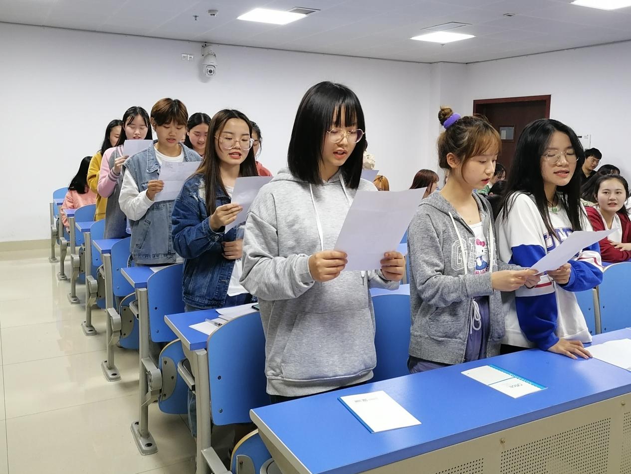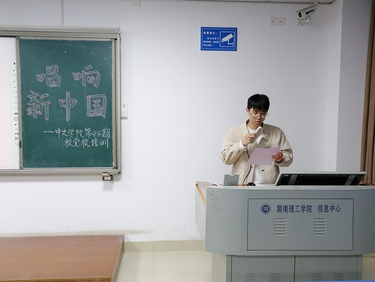 4月23日下午,中文学院校党校第44期入党积极分子培训班在12107开展主题为“唱响新中国”的特色文化活动。