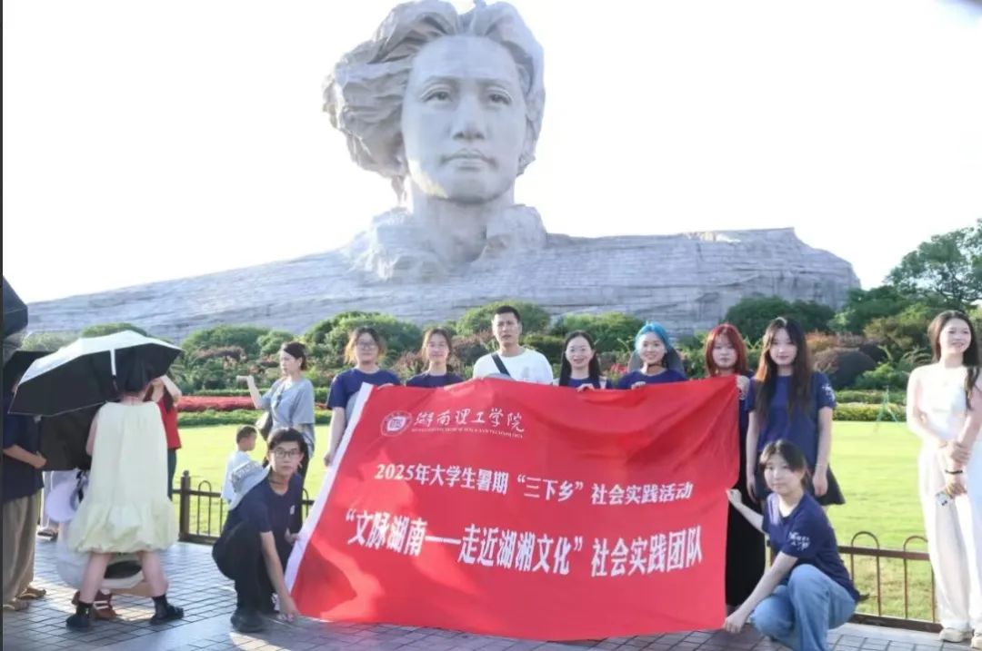 为深入践行习近平总书记关于“文化融合旅游,文化融合科技”的重要指示精神,探索湖湘文化在新时代的创新发展路径,助力文脉湖南建设与文旅深度融合。7月2日,湖南理工学院中国语言文学学院“文脉湖南——走进湖湘文化”社会实践团队在团委书记孙聚荣、2022级辅导员徐去非老师的带领下,于长沙橘子洲头开展暑期“三下乡”活动,实地调研“两个融合”赋能文旅发展的生动实践。
