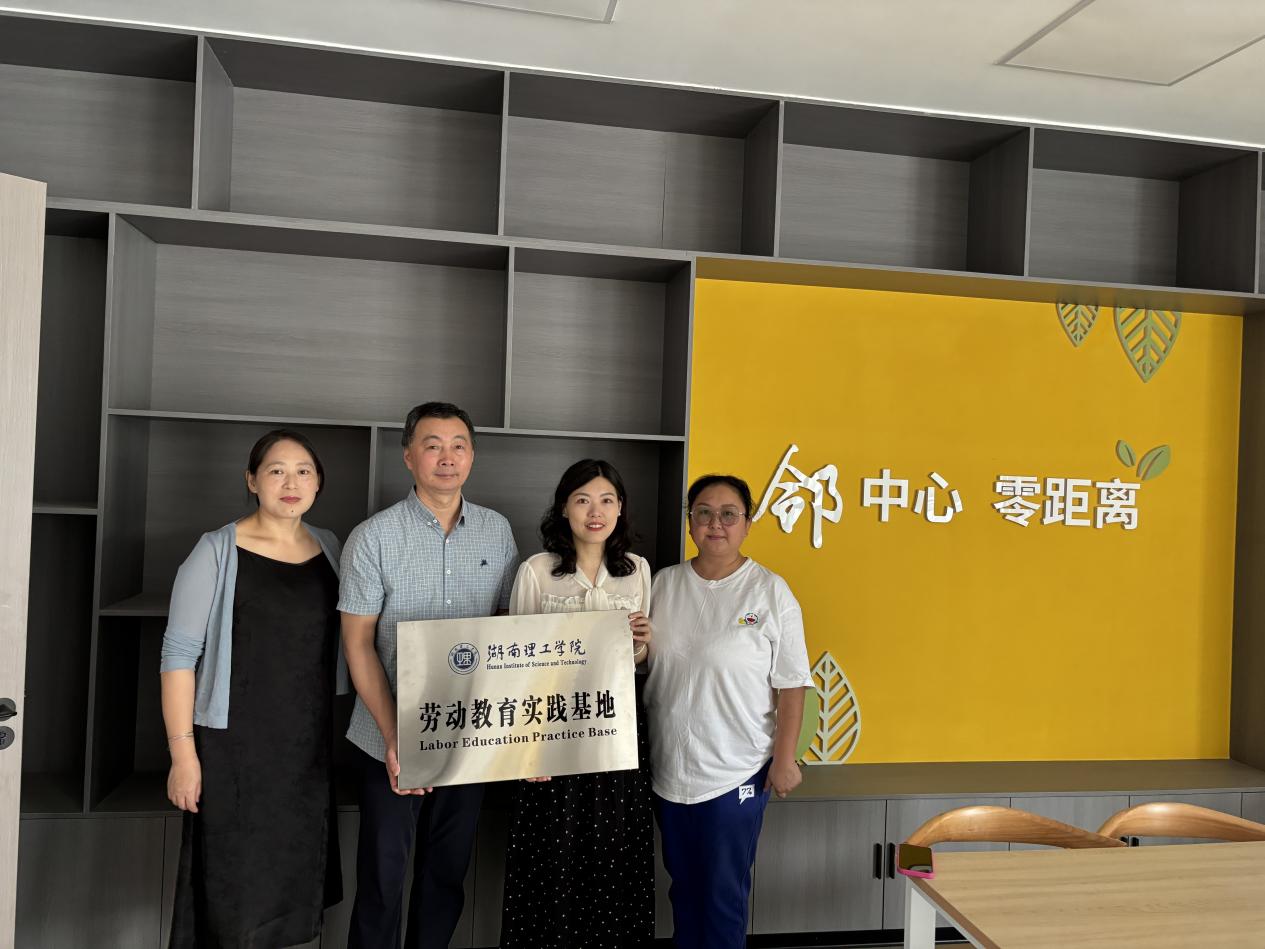 为进一步落实立德树人根本任务,切实推进劳动教育融入社区实践。6月4日上午,湖南理工学院中国语言文学学院劳动教育实践基地在岳阳楼区望岳路街道北环路社区挂牌。岳阳楼区望月路街道北环路社区党委书记黄莹,岳阳市岳阳楼区悦启社会工作发展服务中心贾琴,学院党委书记贺波彬,学工办刘子行、孙聚荣等参加。