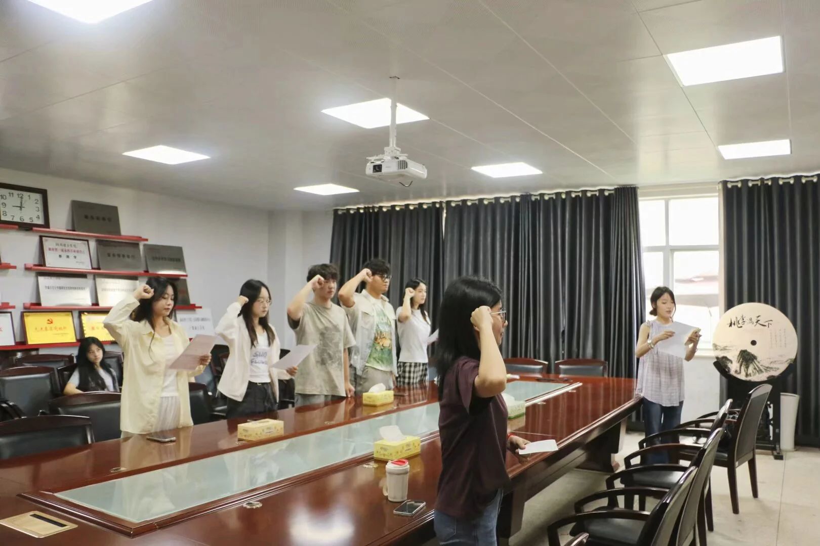 6月17日下午,新闻传播学院在9409会议室举行新发展团员入团仪式,年级辅导员王勤出席,全体新发展团员参加。