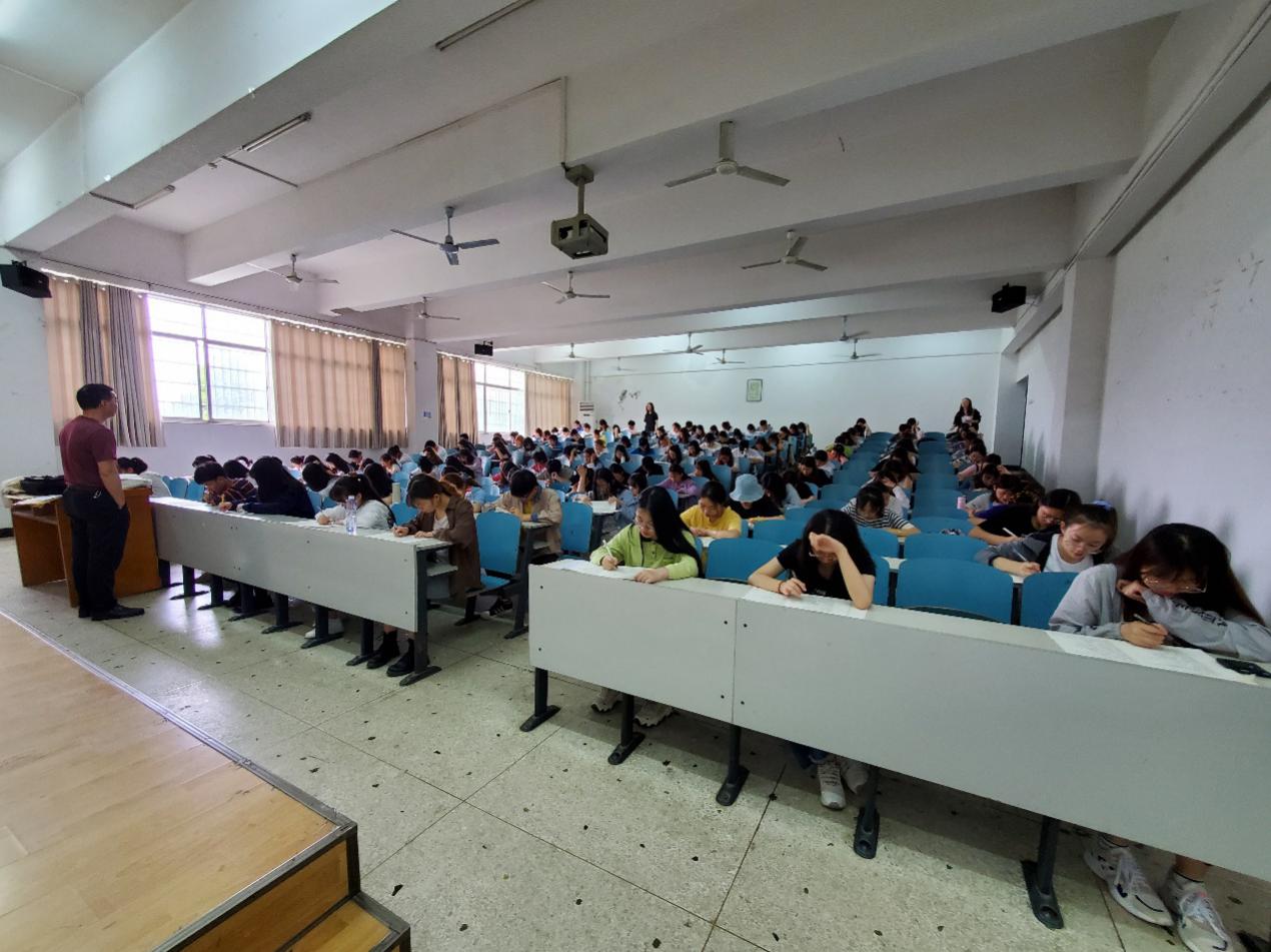 5月13日中午,中文学院在9T1、9T2教室举行“青春心向党”全校大学生党史知识竞赛初赛。中文学院党委副书记贺波彬全程监考。