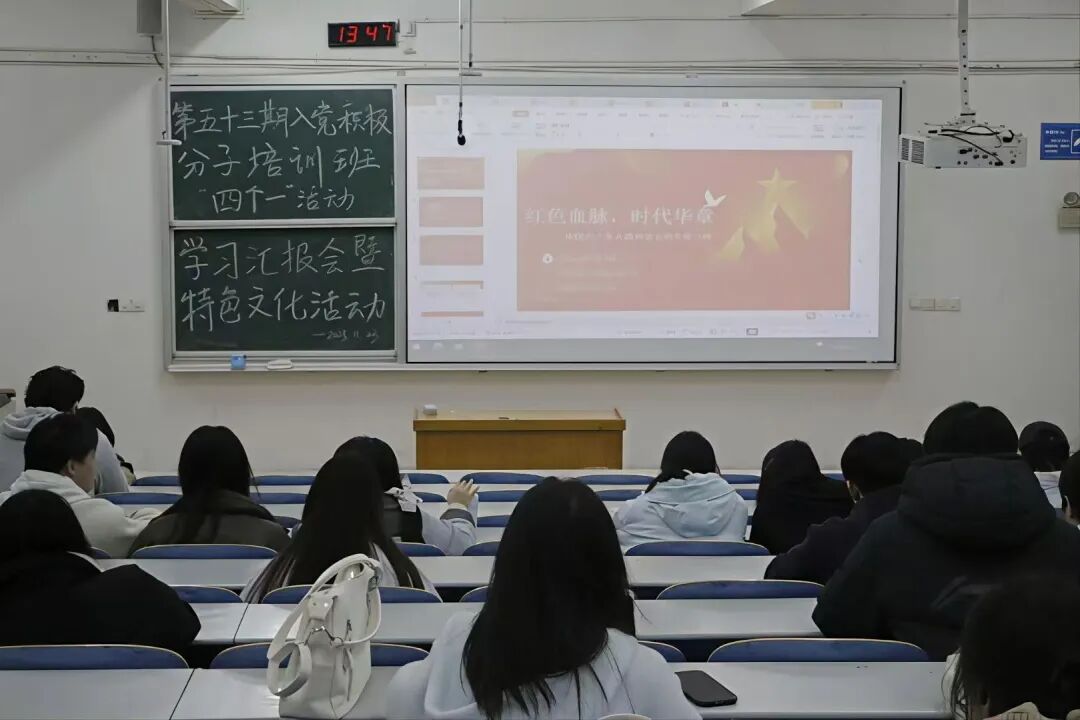 11月23日,文学与新闻传播学院团委组织部在15217教室举办第五十三期入党积极分子培训班“四个一”活动学习汇报会暨特色文化活动。本次活动由组织部干事曹雅涵主持,全体入党积极分子参与。