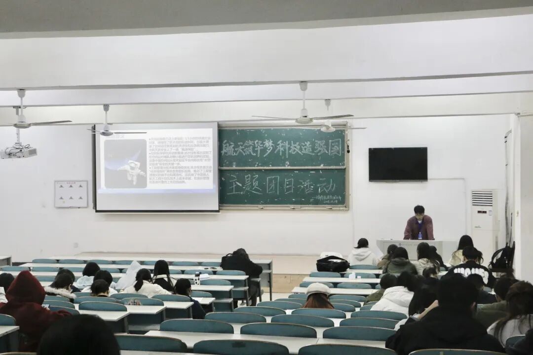 11月28日晚,文学与新闻传播学院在9T1教室举办“航天筑华梦,科技造强国”主题团日活动。本次活动由院团委组织部陈思琦主讲,文新学院部分学生参加。