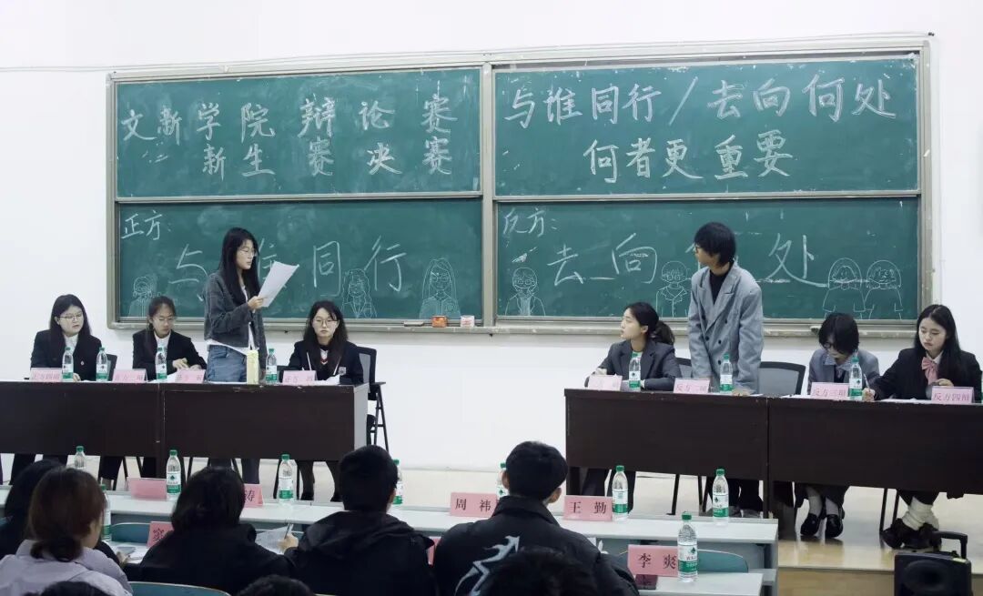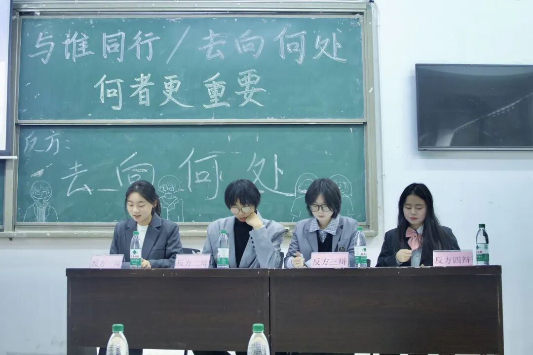 本场比赛的辩题为“与谁同行更重要还是去向何处更重要”。双方辩手围绕究竟何者更有助于个人成长与自我发展进行激烈争锋。正方认为,与同行者的共鸣与联结会不断丰富个人认知、满足个体幸福感,进而推动个体完善与发展。反方则强调,只有明确目标,坚定自己才能在不断变化的事物中拥有稳定内核,促进个人不断成长。