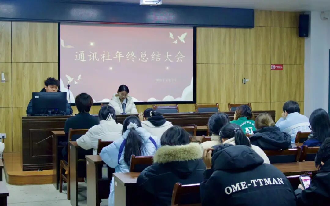 1月10日晚,文学与新闻传播学院通讯社于9401会议室举办年终总结大会。全体通讯社成员参会,会议由学院通讯社社长晁一鸣主持。