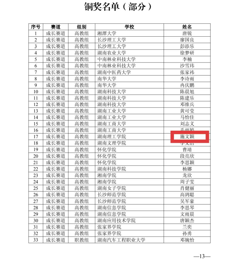 1月16日,湖南省第三届大学生职业规划大赛决赛结果揭晓。在这场以“筑梦青春志在四方,规划启航职引未来”为主题的大赛中,文学与新闻传播学院2023级新闻学专业学生施文颖,凭借一份扎根县域、视野开阔的职业规划,荣获成长赛道高教组铜奖。