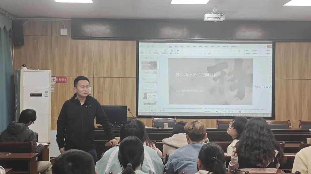 4月21日晚,文学与新闻传播学院在9401会议室举办南湖讲坛第十一期第四讲“韩少功文学世界的空间建构”主题讲座。本次讲座由张雯博士主讲,张勇副教授主持,学院部分教师及本科生、研究生到场聆听。