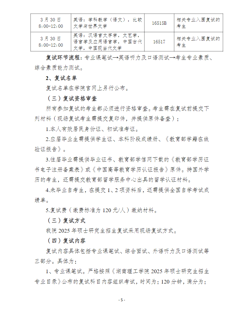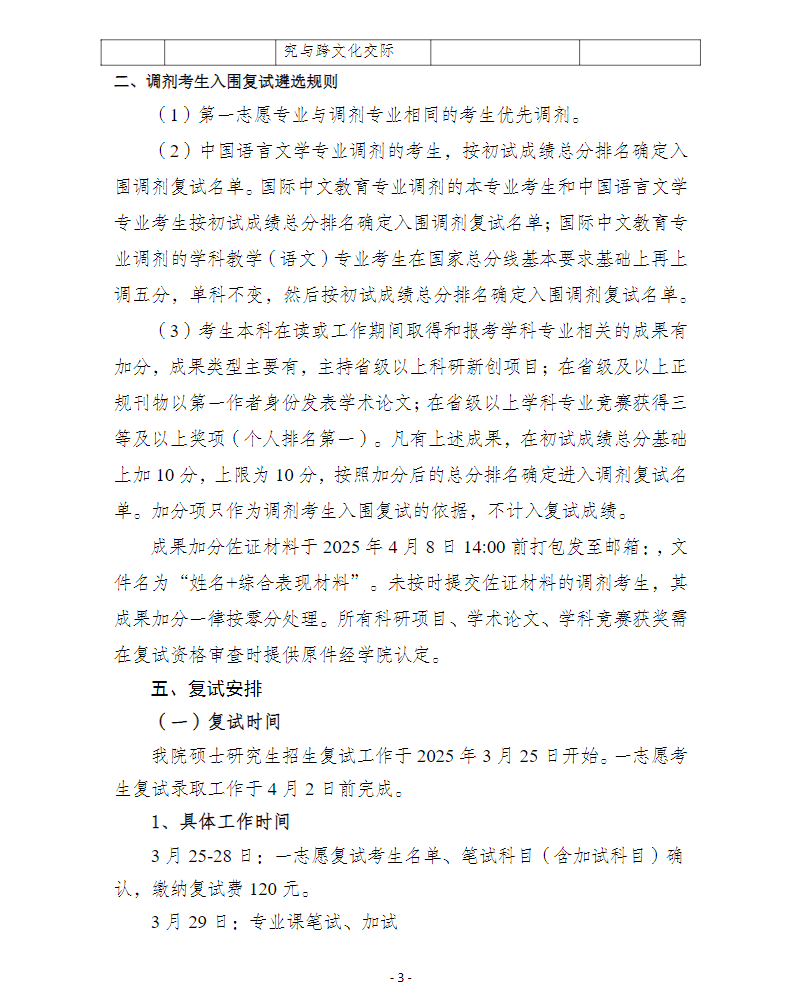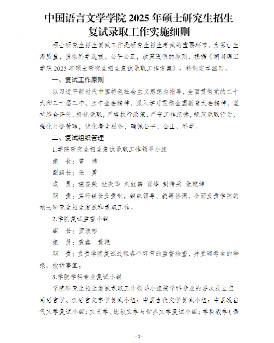 中国语言文学学院2025年硕士研究生招生复试录取工作实施细则